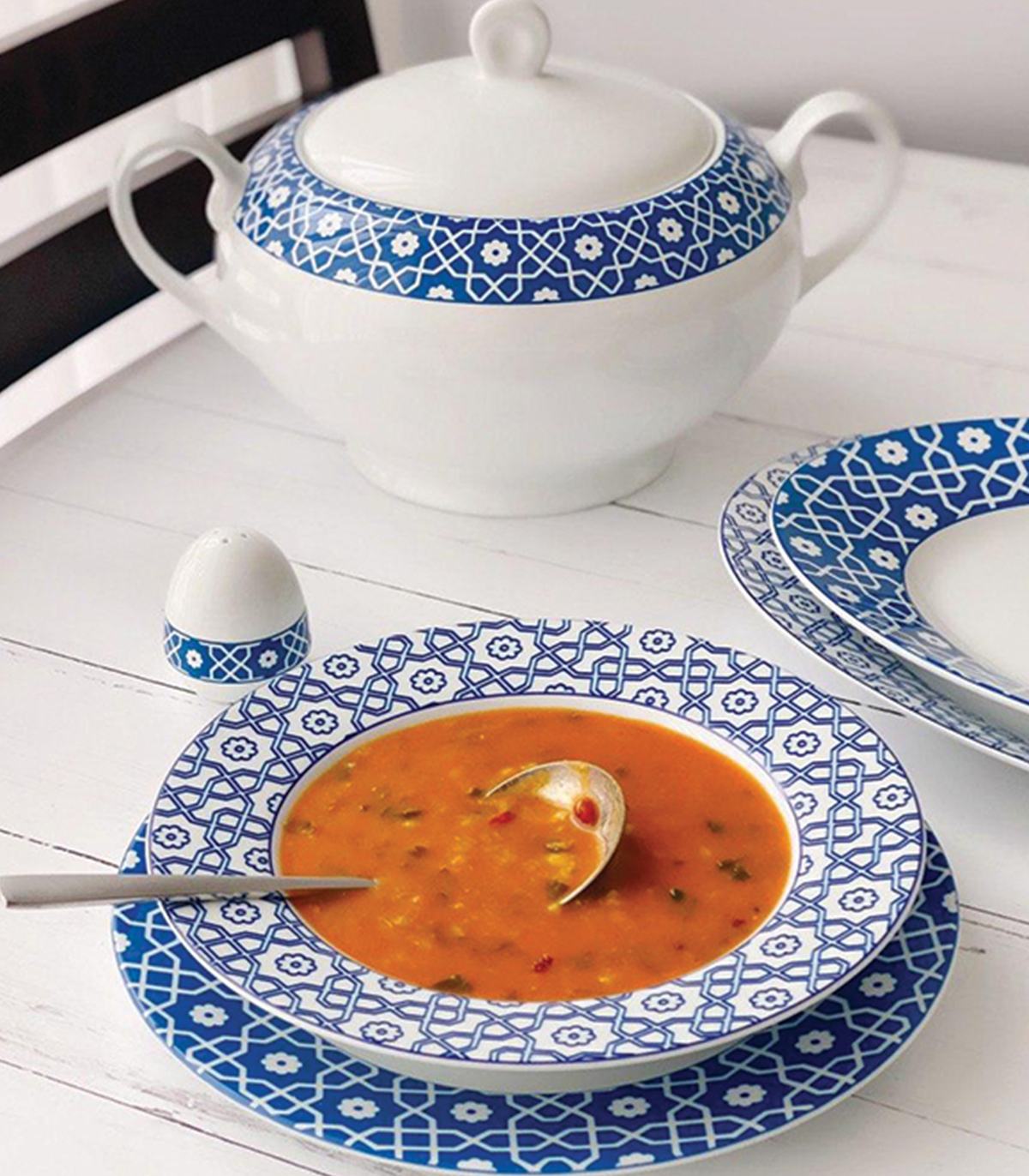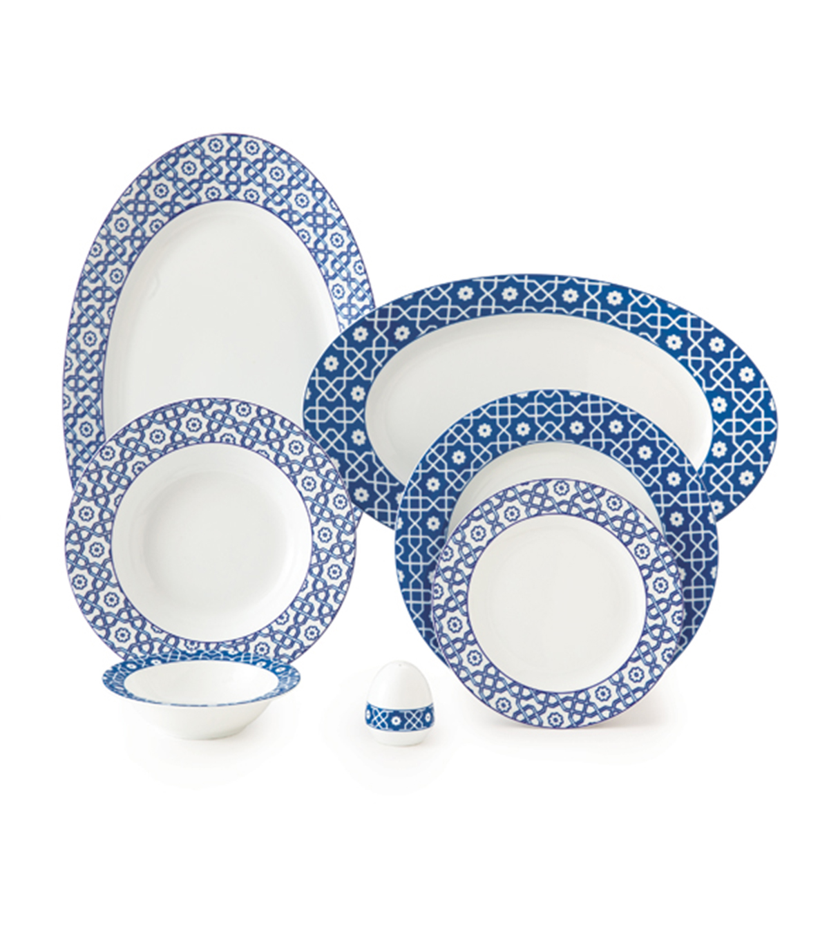 سرویس غذاخوری چینی ۱۰۲ پارچ ۱۲ نفره مدل میبد سرمه ای سری ایتالیا اف