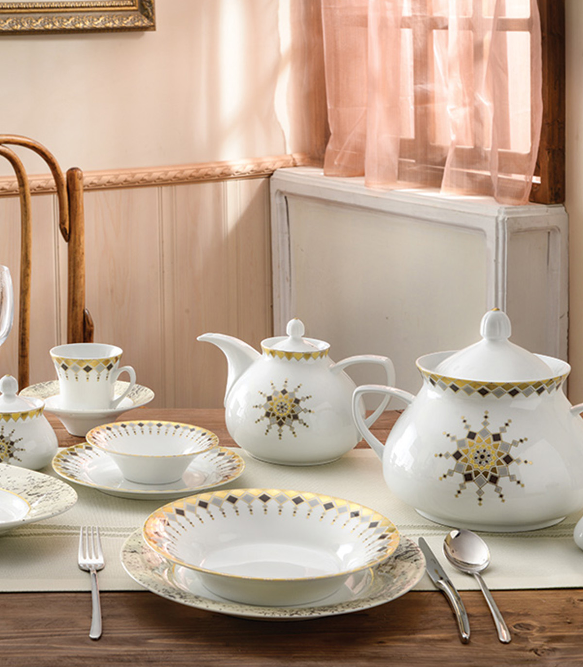 سرویس غذاخوری چینی ۱۲نفره ۱۰۸ پارچه مدل کلوپاترا سری شهرزاد