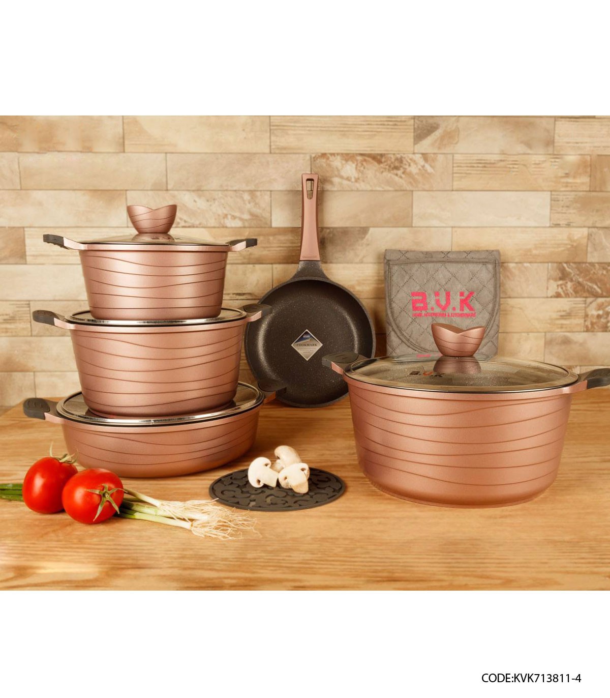 سرویس قابلمه گرانیتی رزگلد ۱۱ پارچه مدل ۷۱۳۸۱۱-۴