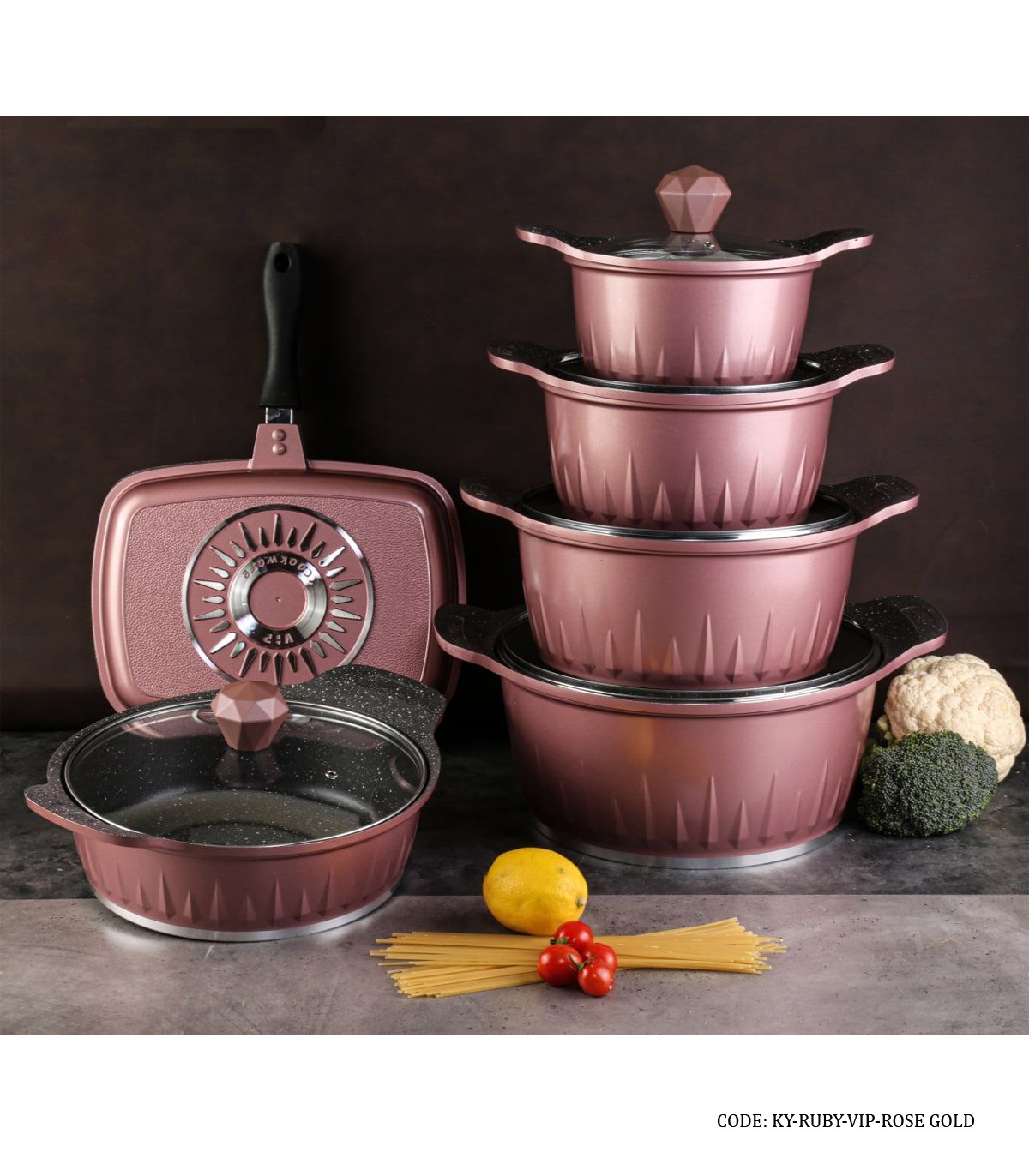 سرویس قابلمه گرانیتی ۱۱ پارچه VIP رنگ رزگلد