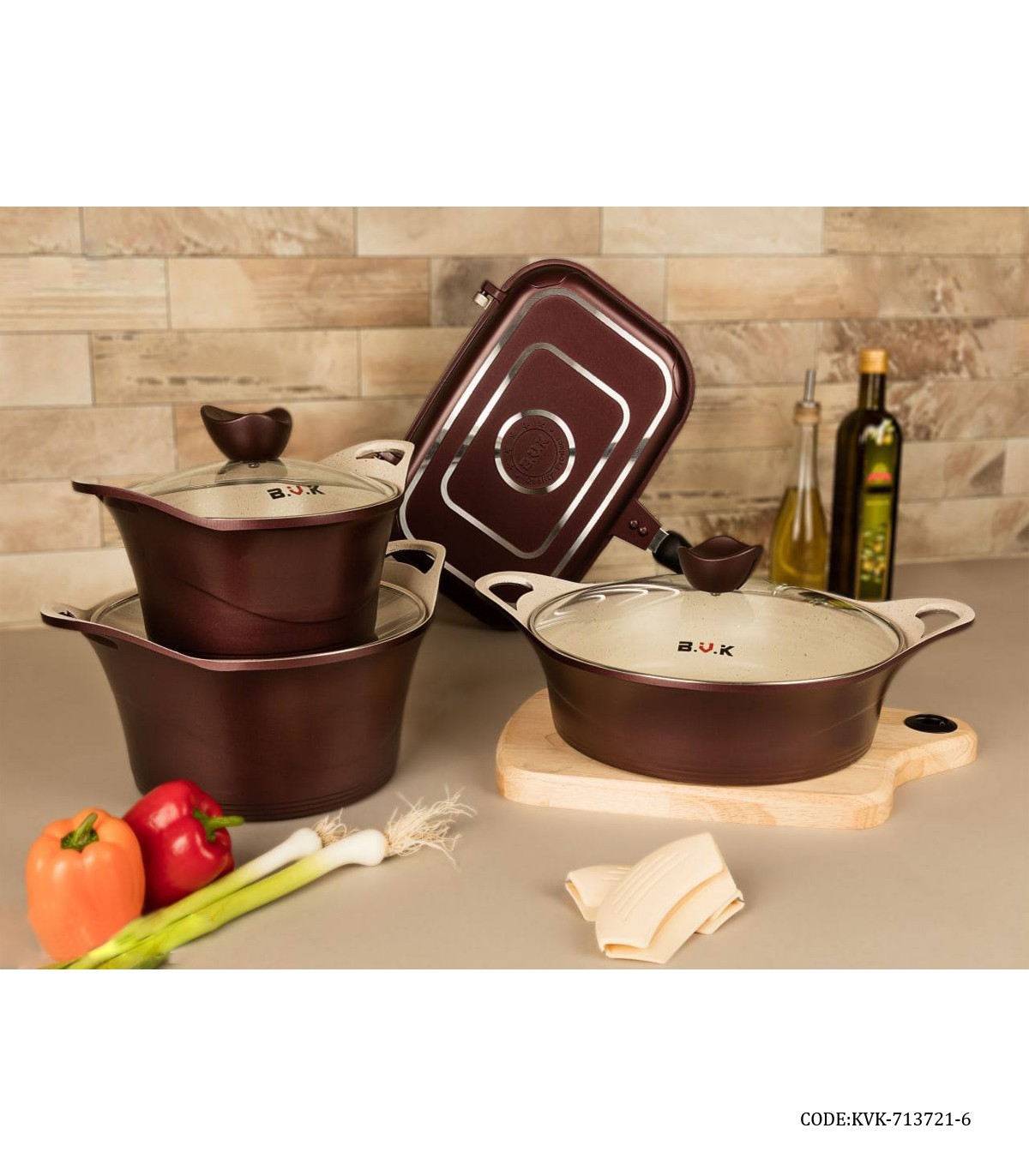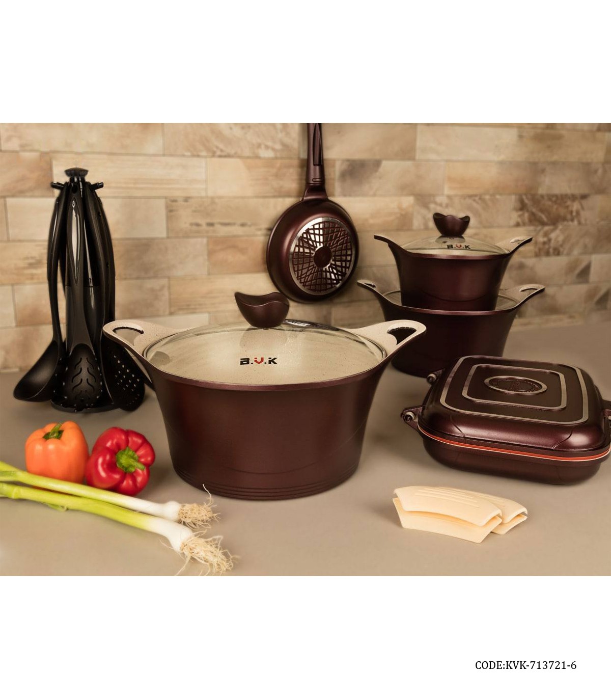 | شامل | قابلمه سایز 20 ، قابلمه سایز 24 ، قابلمه سایز 28 ، قابلمه سایز 32 ، تابه دربدار سایز 28، تابه تک دسته بدون درب سایز 20، تابه رژیمی سایز 34، ست کفگیر و ملاقه، دوعدد دستگیره |