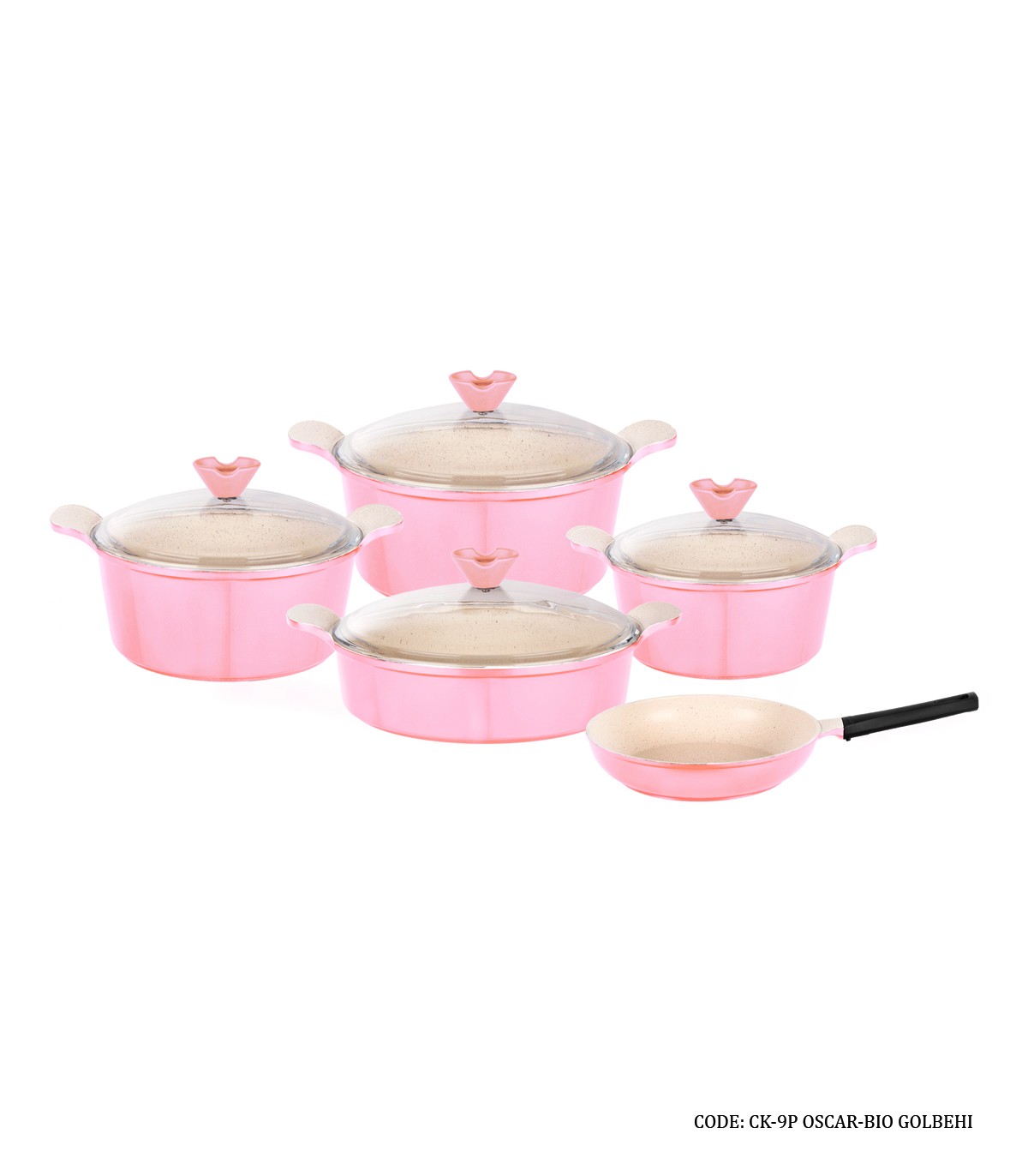 سرویس قابلمه گرانیتی ۹ پارچه مدل اسکار گلبهی