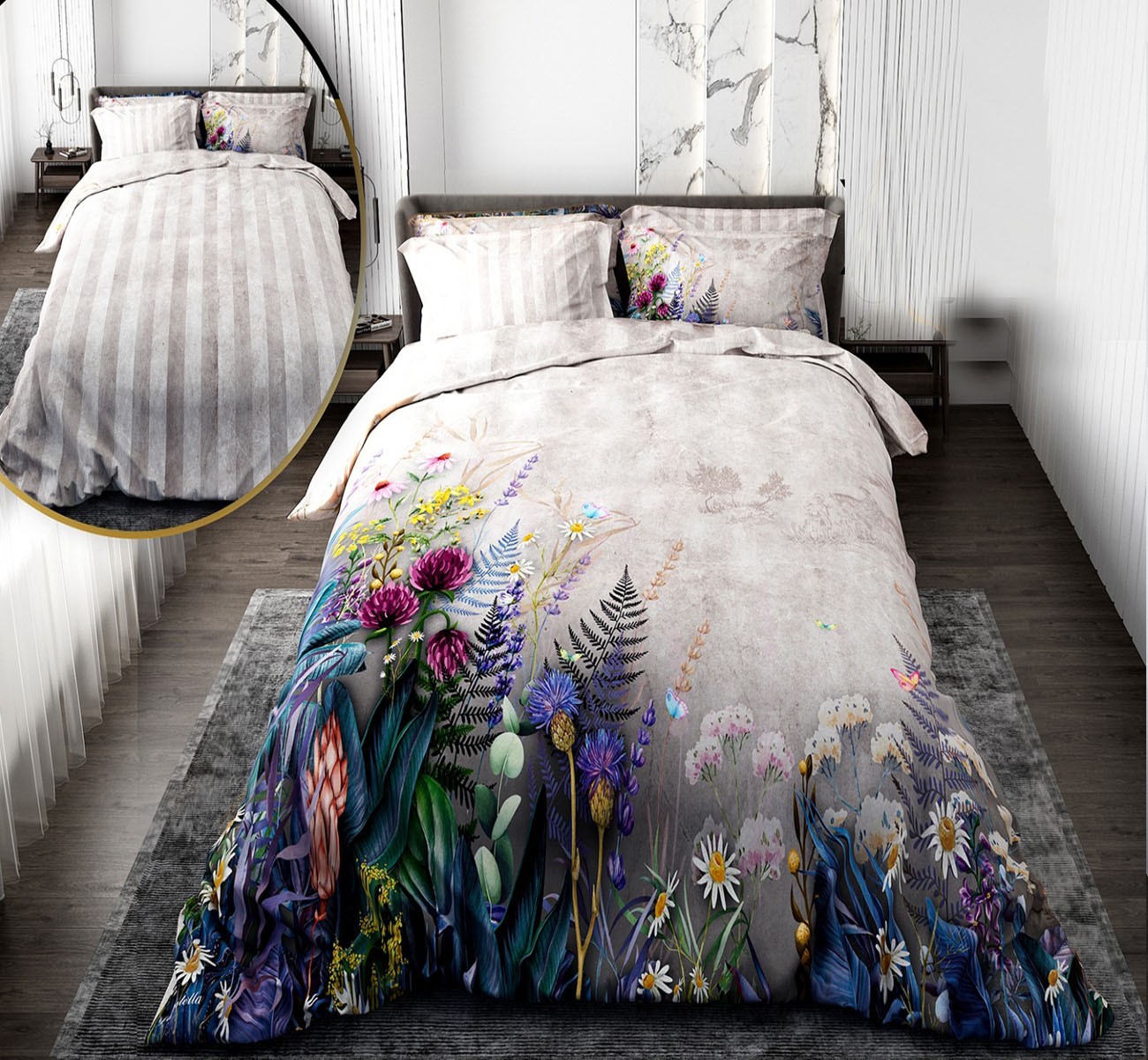 سرویس لحاف روتختی دو نفره دوروی طرح گل و راه راه مدل الا