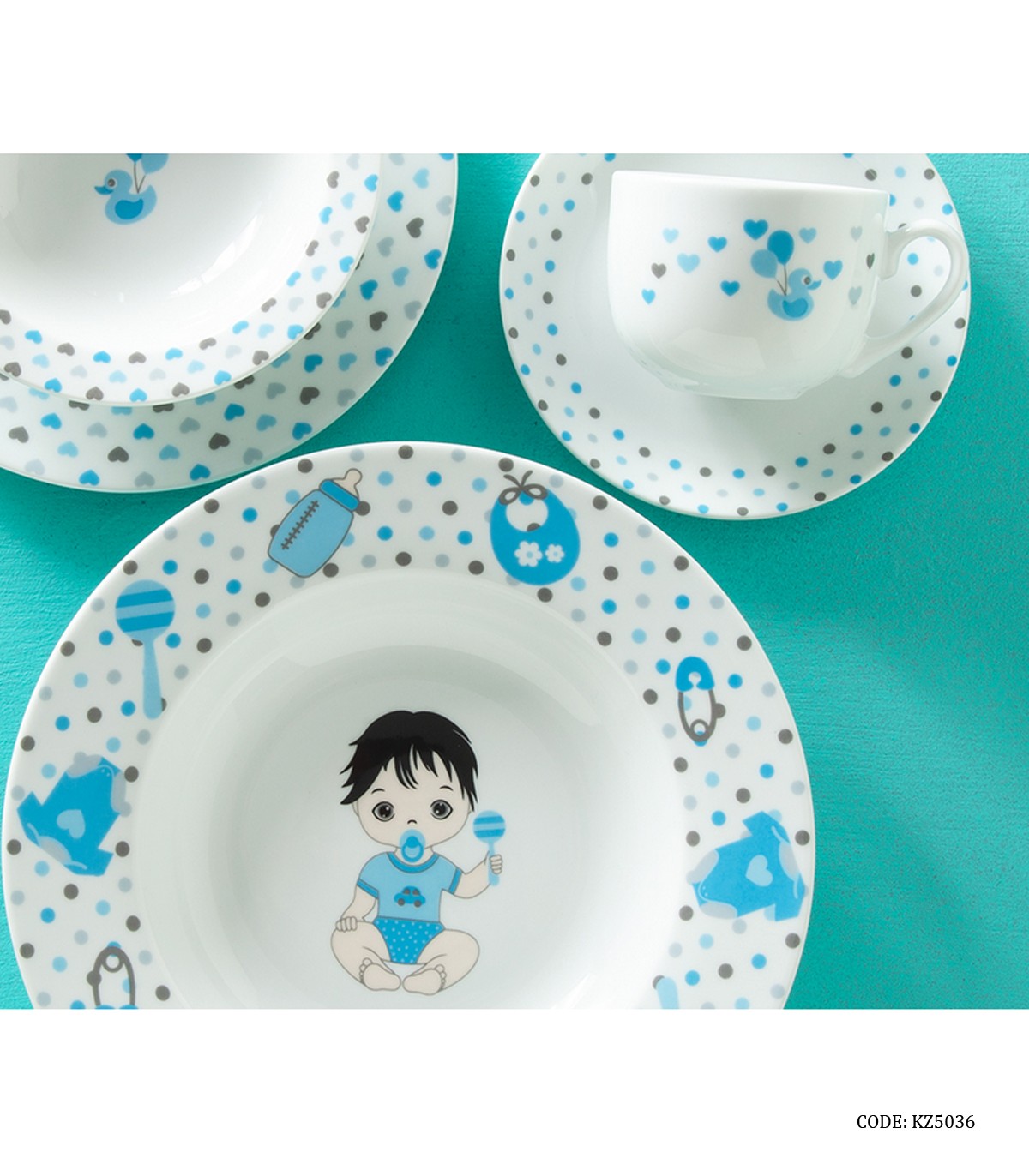 سرویس چینی نوزاد زرین طرح New Born آبی