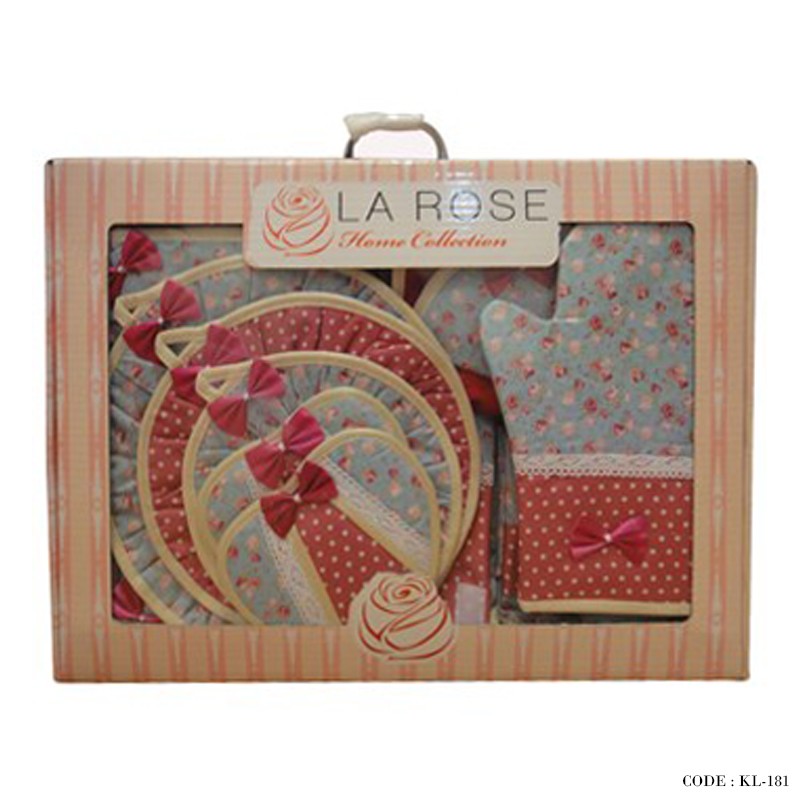 | شامل | 18 تکه: 1 عدد نمگیر ظرف،1 عدد پیش بند،3 عدد دمکنی کش دار،2 عدد دستکش فر،2 عدد دستگیره قلبی، 2 عدد دستگیره مربع،1 عددکیسه نان، 1 عدد جانونی رومیزی، 1 عدد کیسه سبزی، 1 عدد جاسبزی رومیزی، 1 عدد حوله، 2 ع |