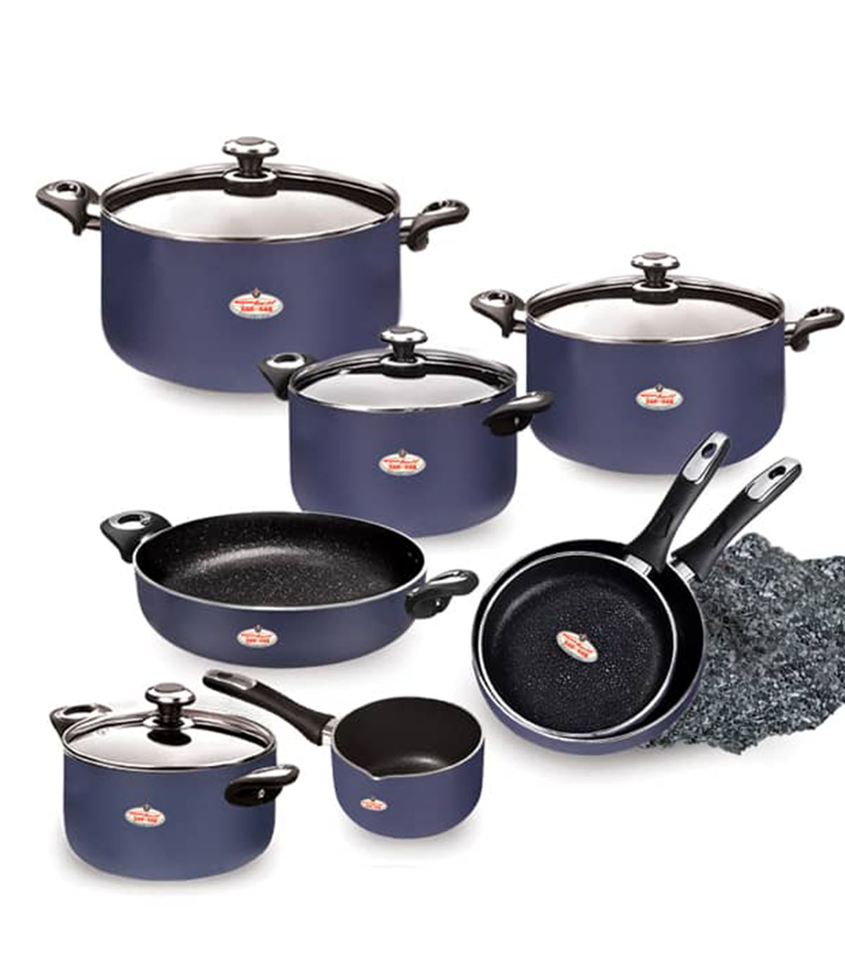 - شامل 1 عدد قابلمه سایز 20 گرانیتا با درب شیشه ای، 1 عدد قابلمه سایز 24 گرانیتا با درب شیشه ای، 1 عدد قابلمه سایز 28 گرانیتا با درب شیشه ای، 1 عدد قابلمه سایز 32 گرانیتا با درب شیشه ای، 1 عدد تابه تک دسته سایز 20 گرانیتا، 1 عدد تابه تک دسته سایز 24 گرانیتا، 1 عدد تابه دو دسته سایز 32 گرانیتا،1 عدد شیرجوش سایز 16 گرانیتا