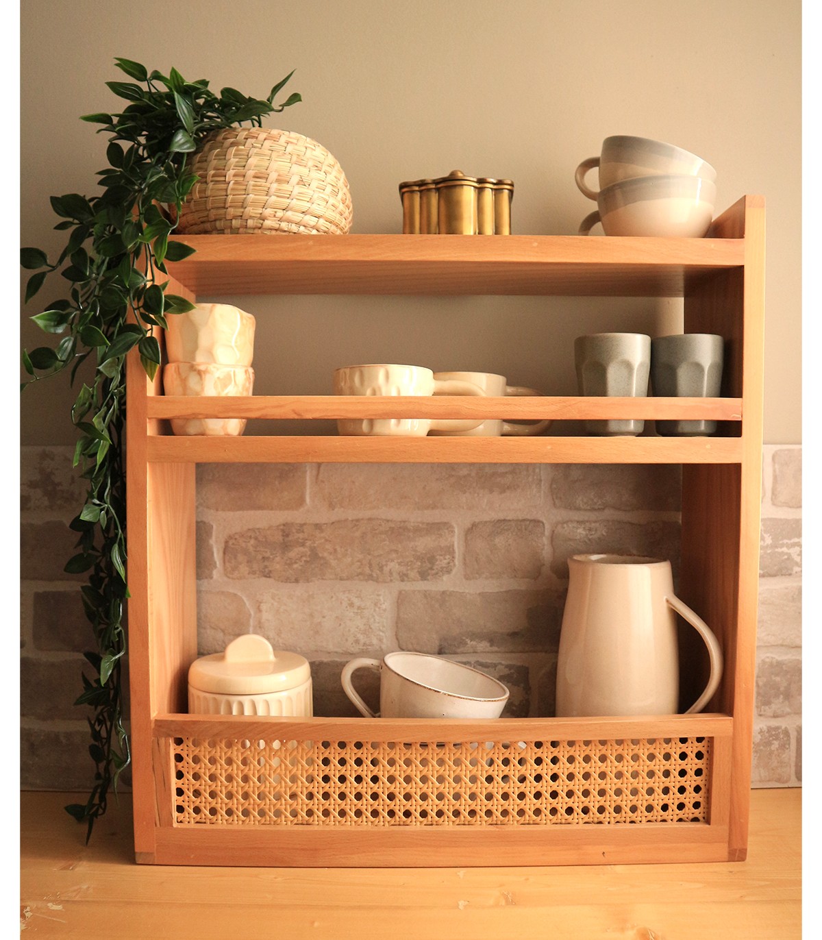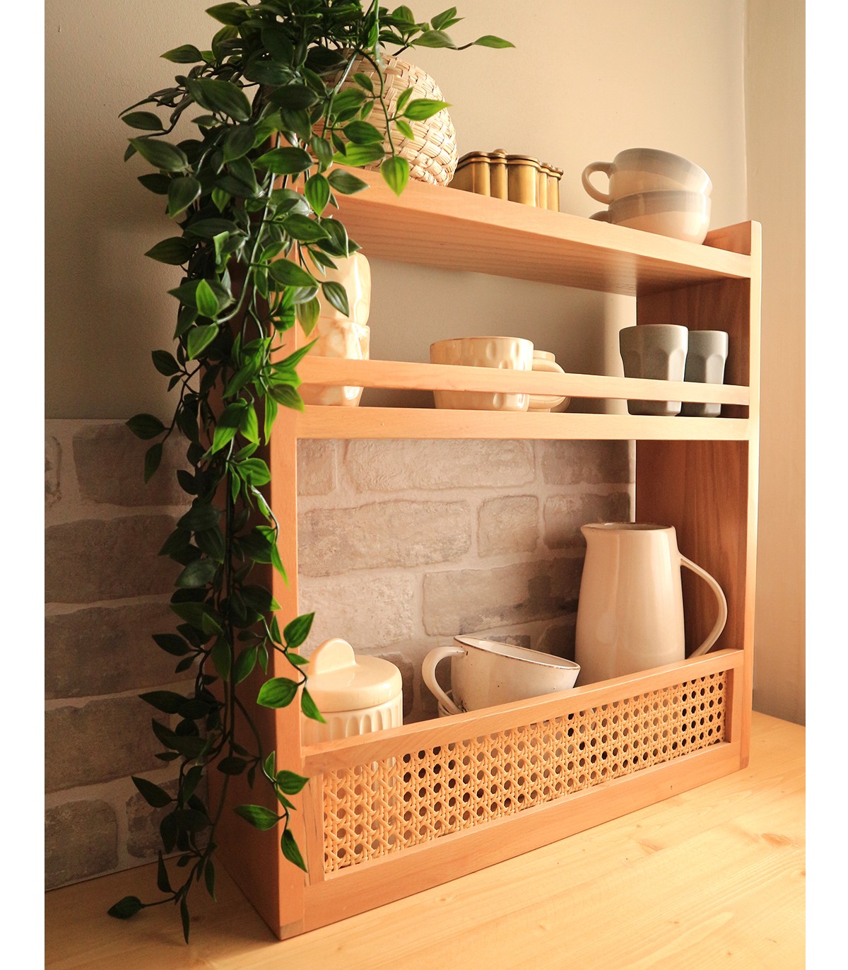 شلف چوبی سه طبقه آشپزخانه رو کابینتی مدل دیبا