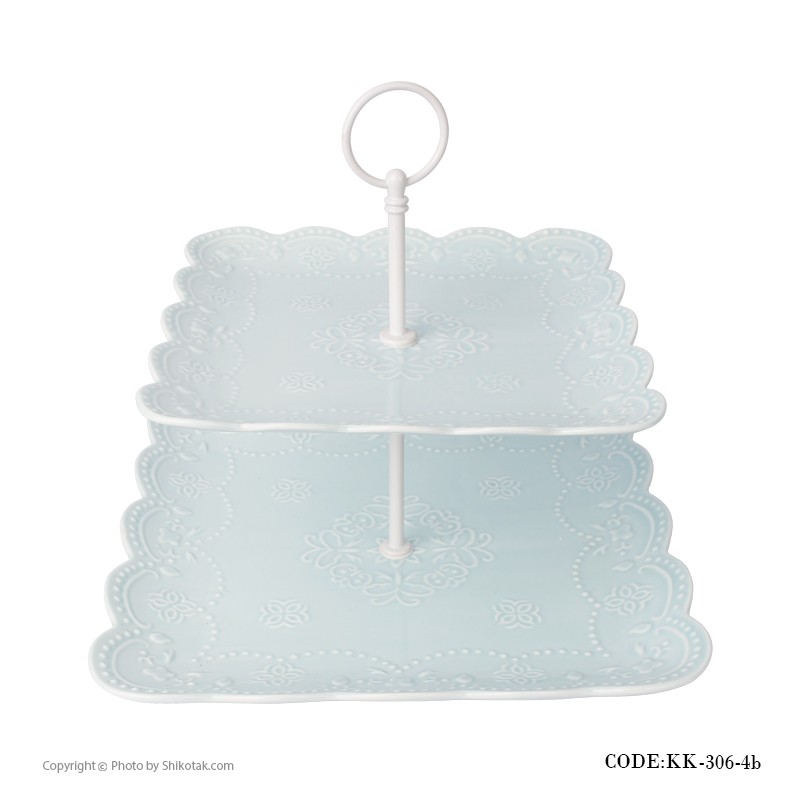 شیرینی خوری دو طبقه مربع طرح دار مدل BLUE
