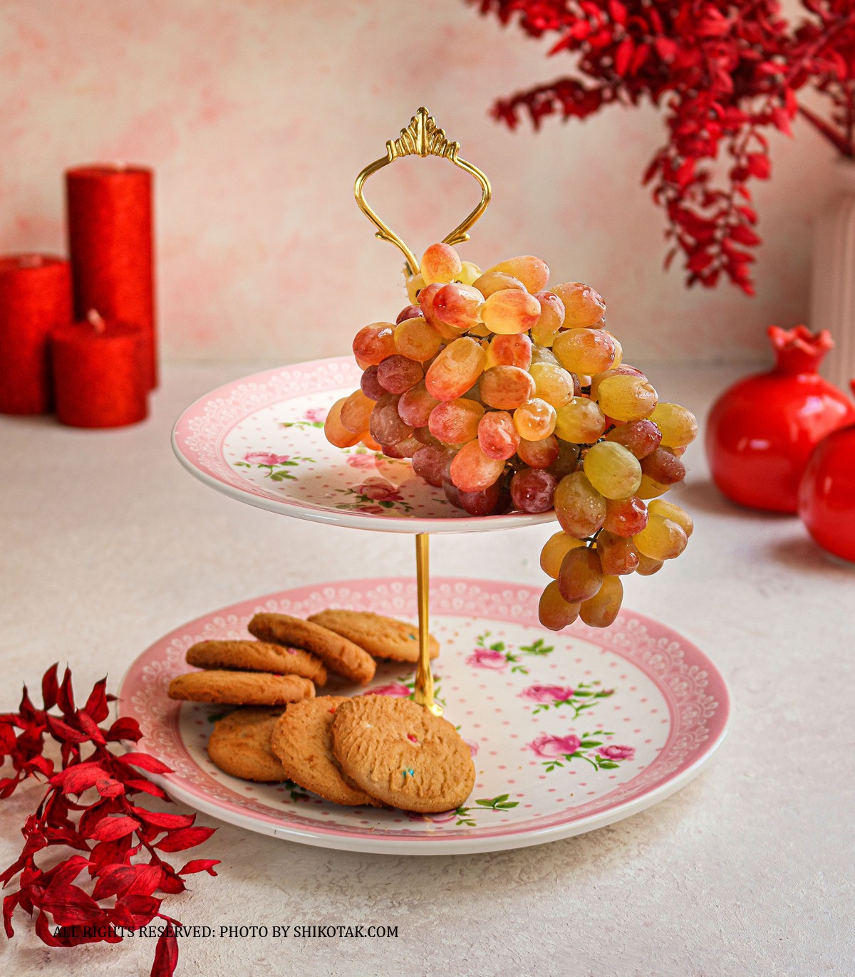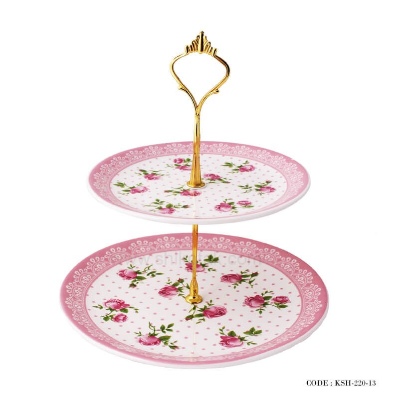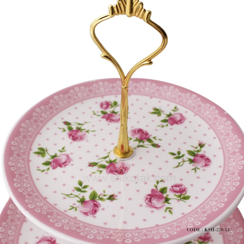 شیرینی خوری سرامیکی دو طبقه گلدار مدل فلورا