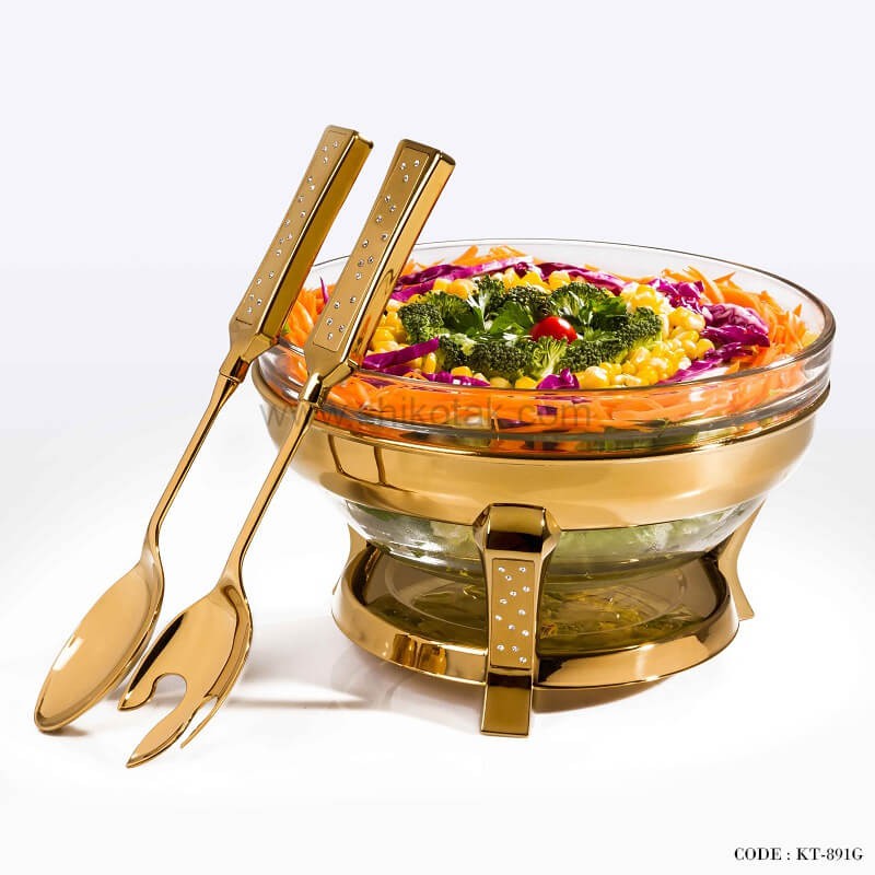 ظرف سالاد خوری استیل مدل دایموند طلایی