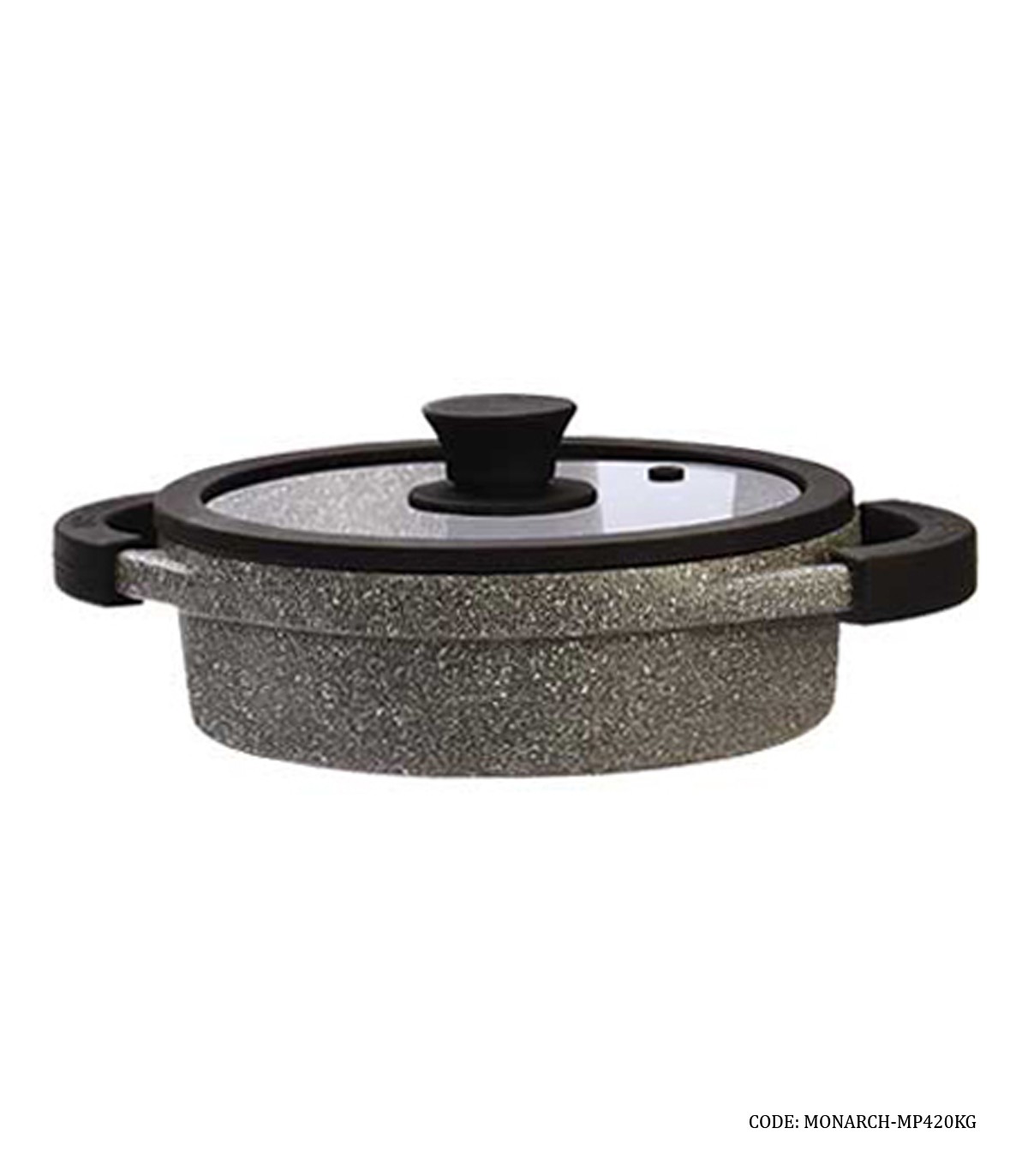 تابه گرانیتی درب شیشه ای زرساب سایز ۲۰ مدل مونارک مشکی