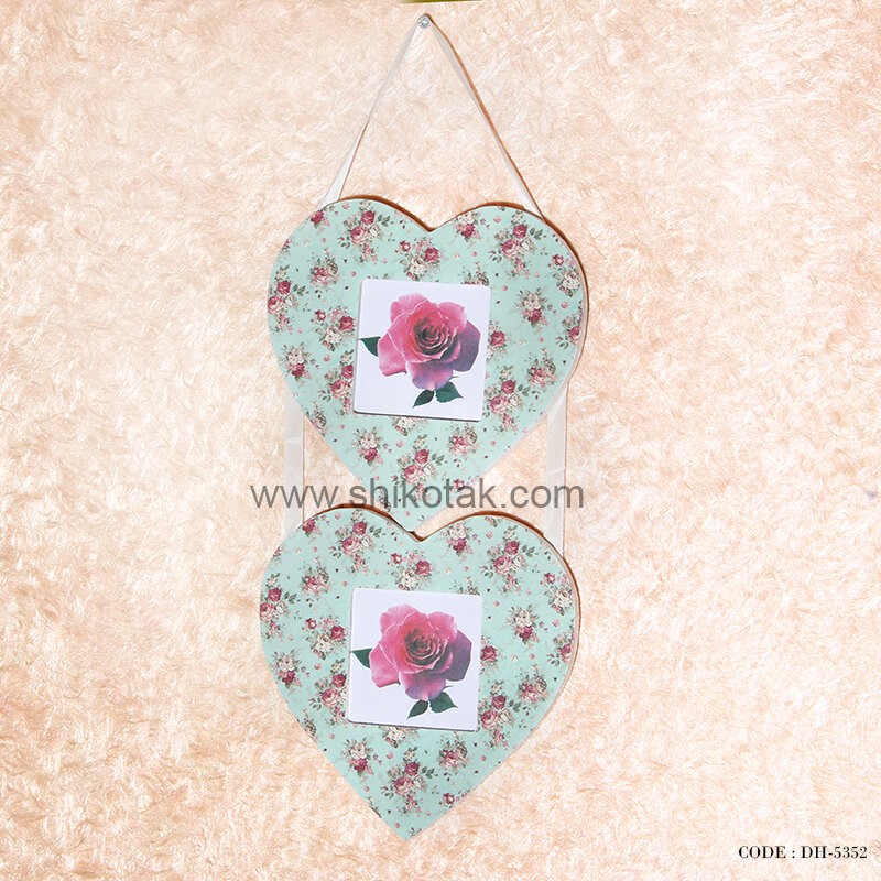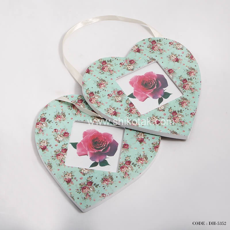 قاب عکس چوبی آویز دوتایی طرح قلب