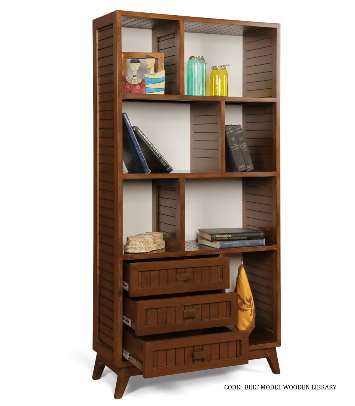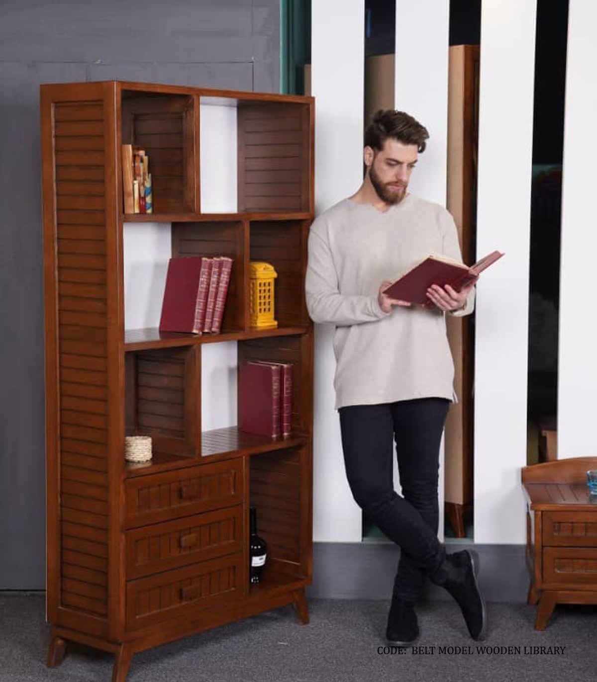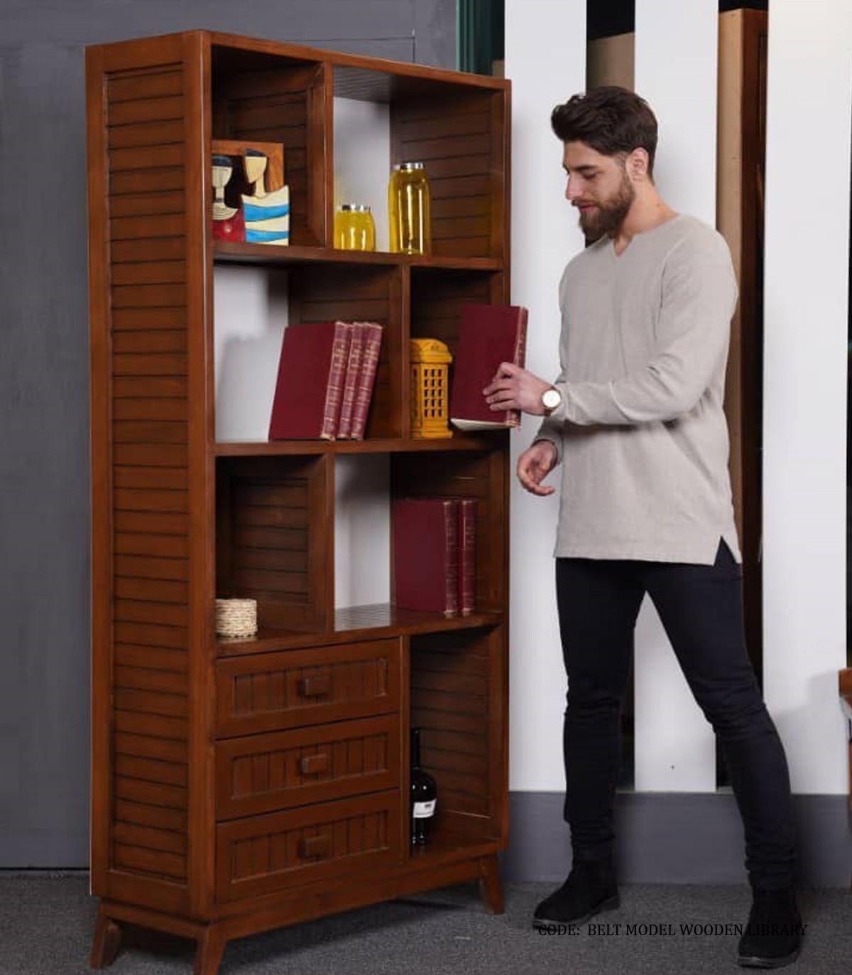 قفسه کتاب چوبی ۳ طبقه کشو دار مدل رونیکا