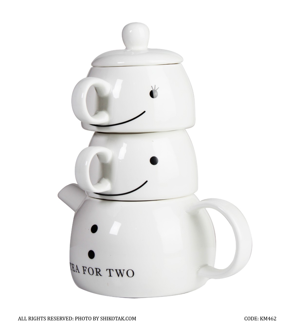 قوری و فنجان دو کاپ شامل یک قوری و دو عدد فنجان است که به صورت طبقانی رو هم قرار می گیرند.