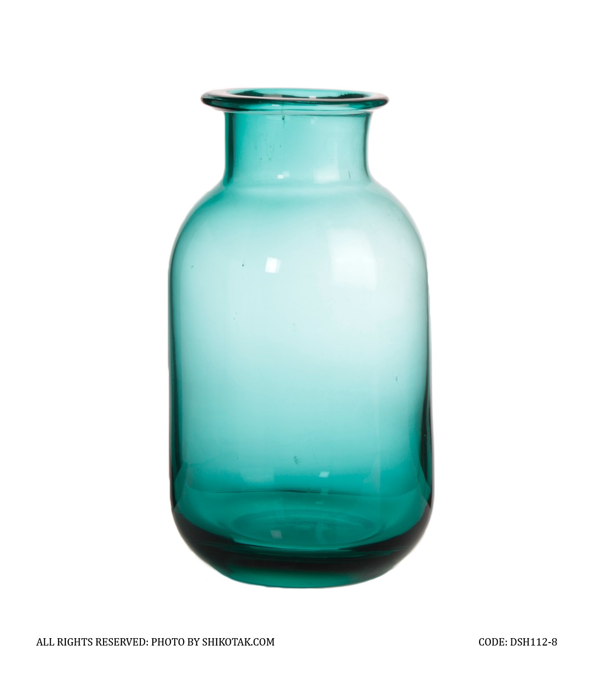 گلدان شیشه ای رومیزی آبی فیروزه ای مدل مینا