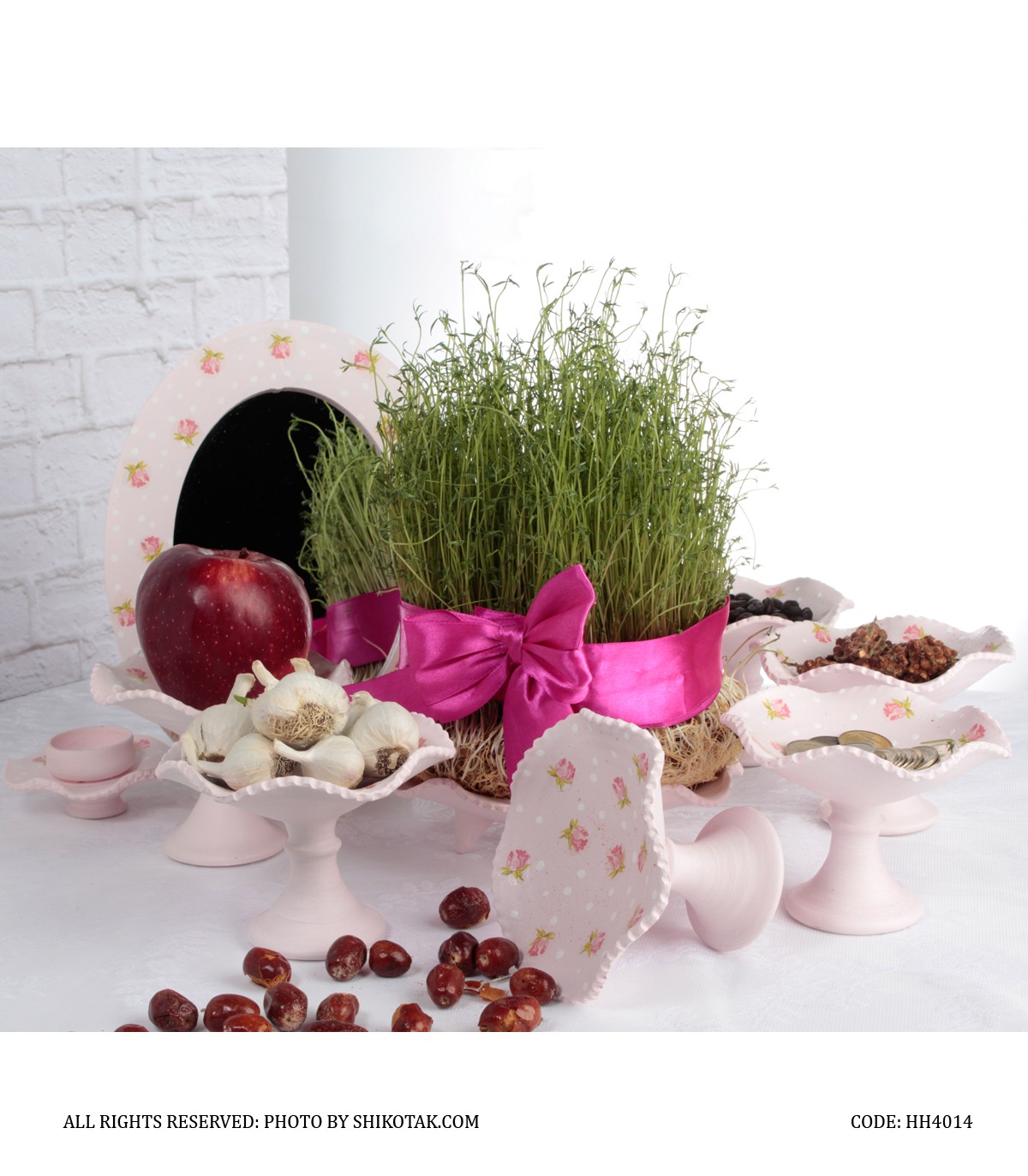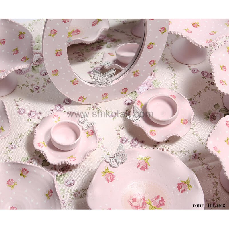 • شامل 6عددکاسه پایه دار،یک عدد کاسه بدون پایه، دو عدد شمعدان و یک عدد آینه