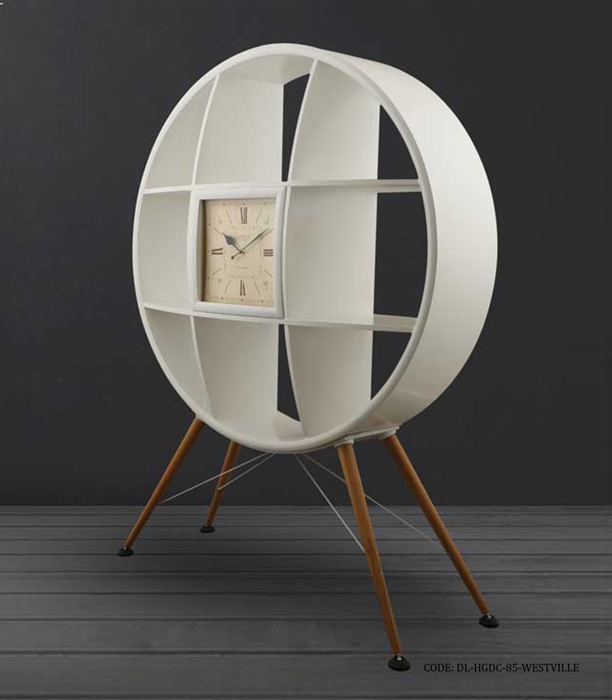 ویترین و کتابخانه گرد چوبی ساعت دار مدل WESTVILLE
