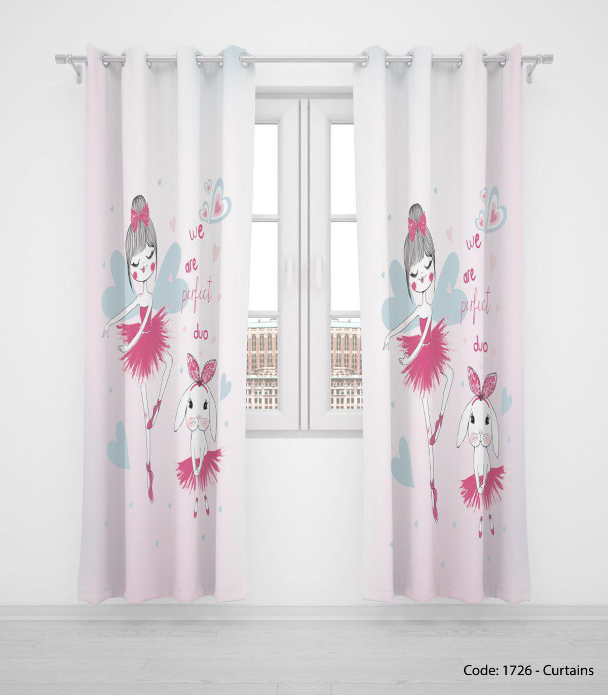 پرده دو تکه پانچی اتاق کودک دختر مدل RABBIT