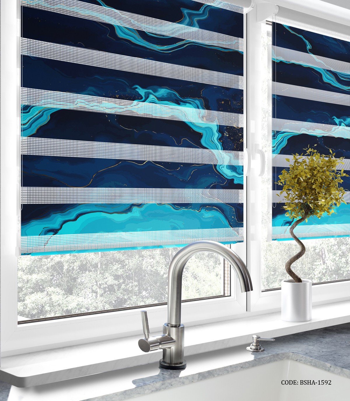 پرده زبرا آشپزخانه طرح مرمریت آبی