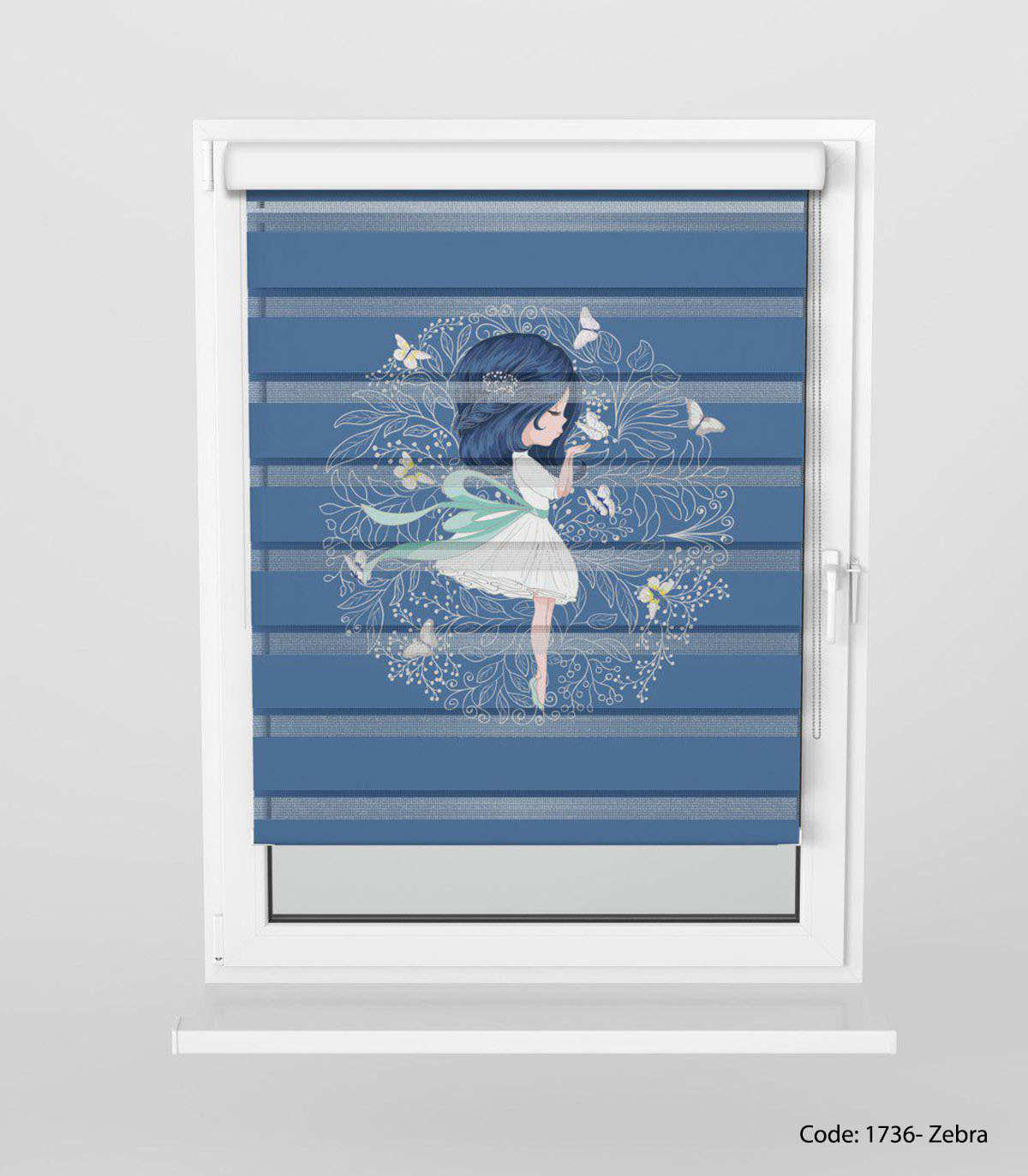 پرده زبرا سرمه ای دخترانه مدل BLUE HAIR