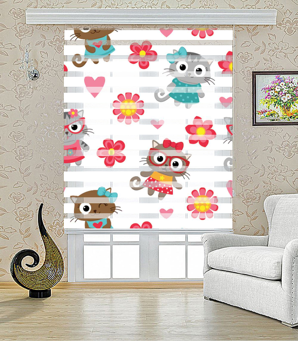 پرده زبرا طرح گربه مدل ۱۴۲۶