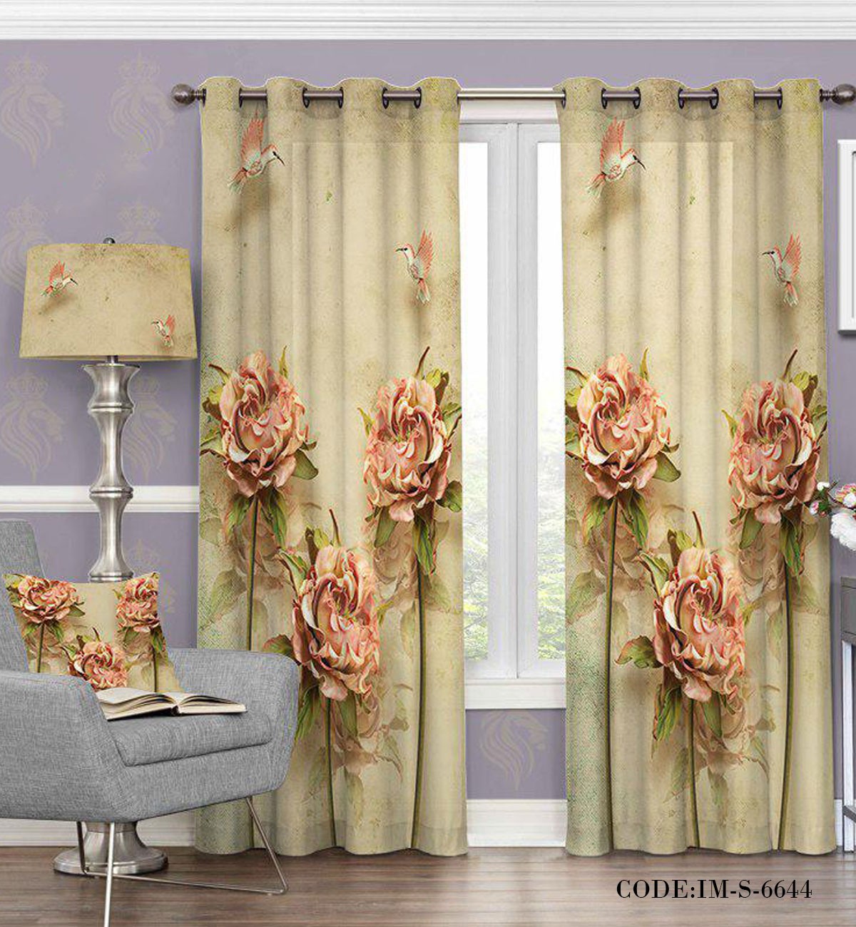 پرده کلاسیک پانچی گل رز مدل ۶۶۴۴