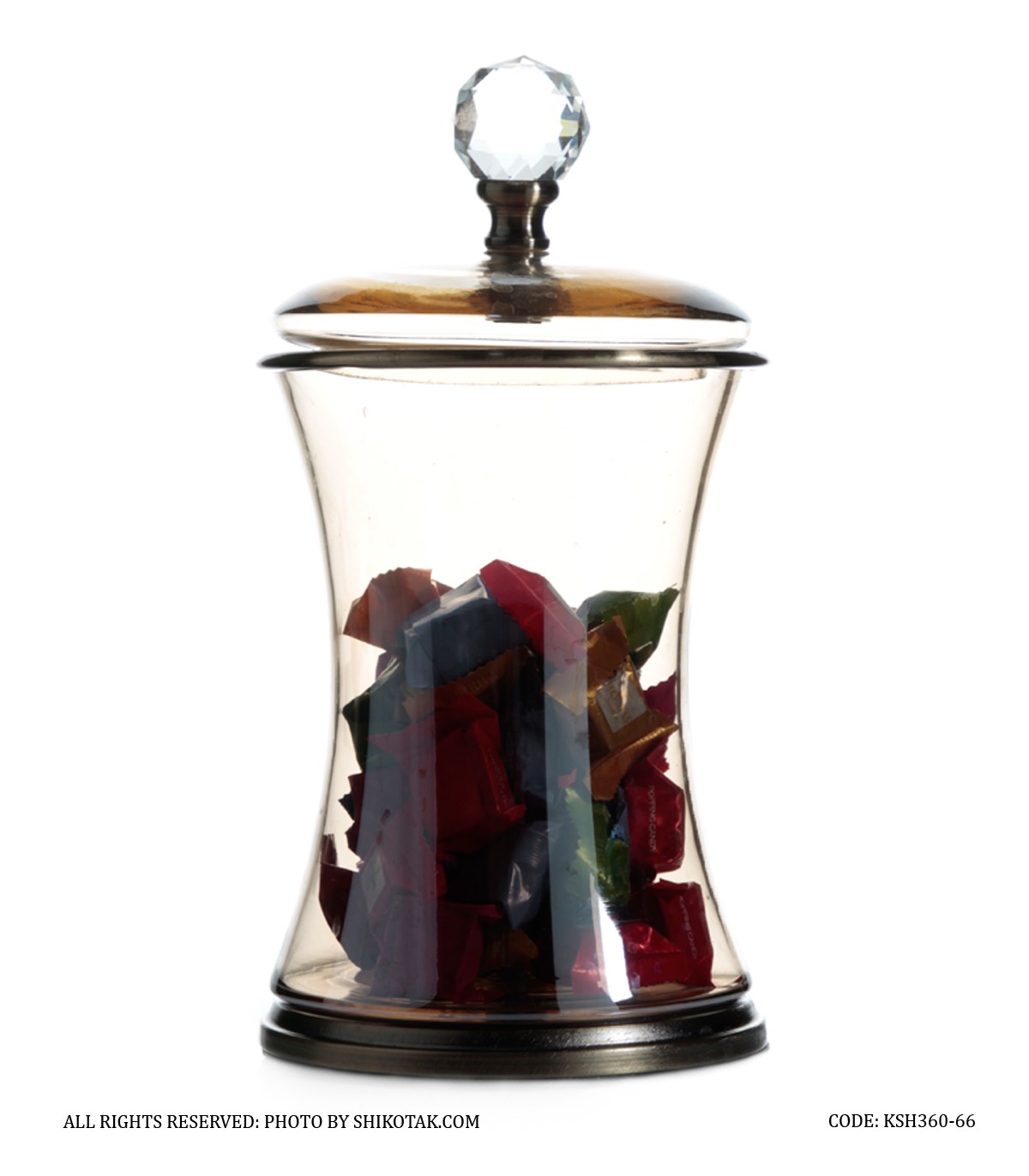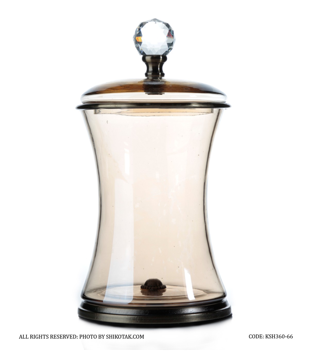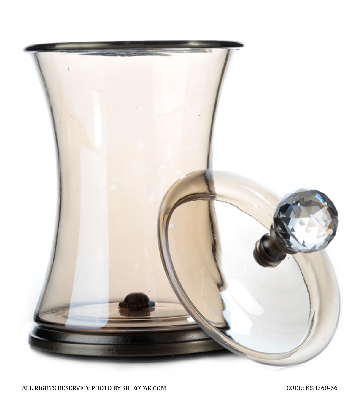 بانکه شیشه ای با درب فلزی برنزی الماس دار