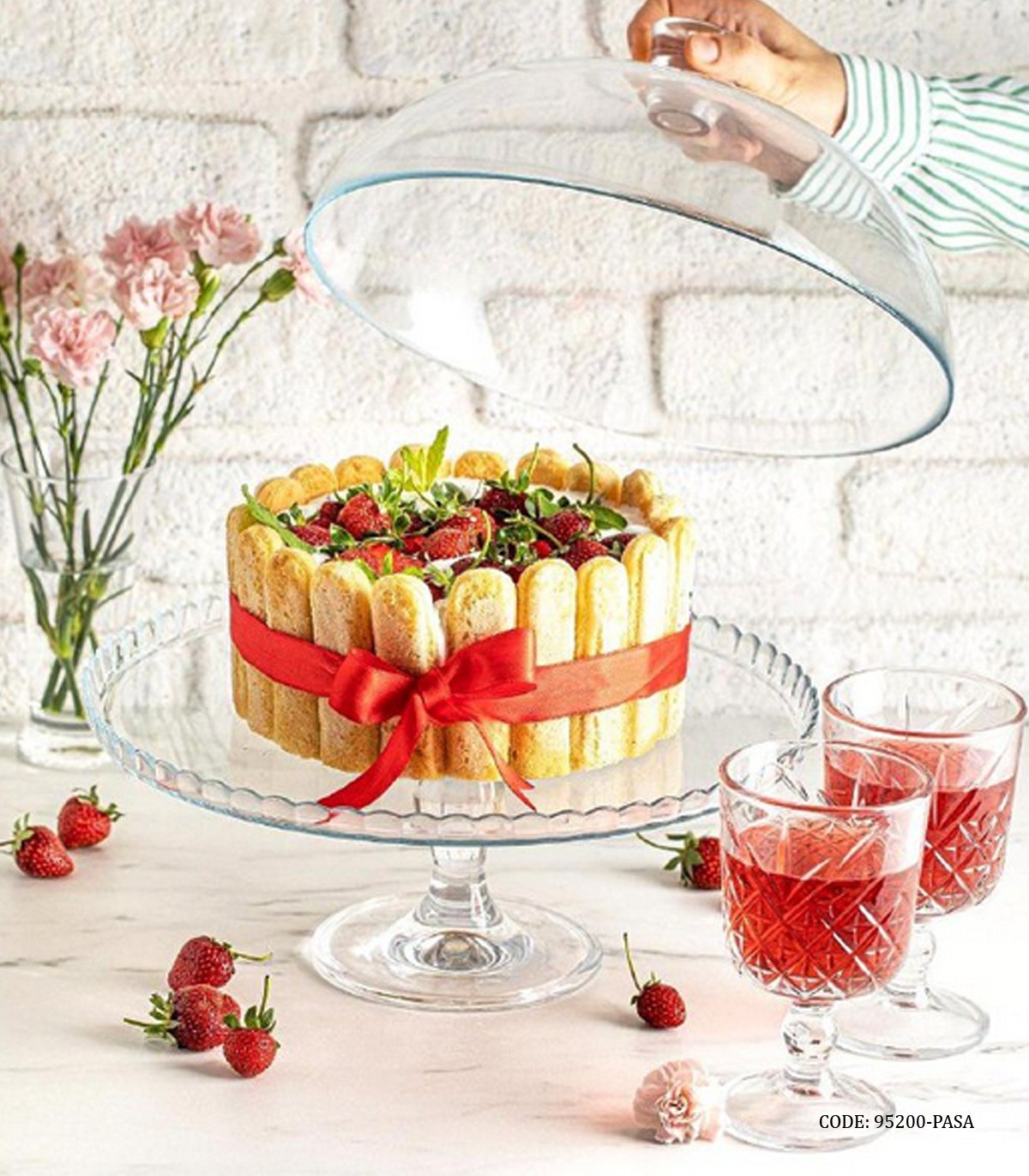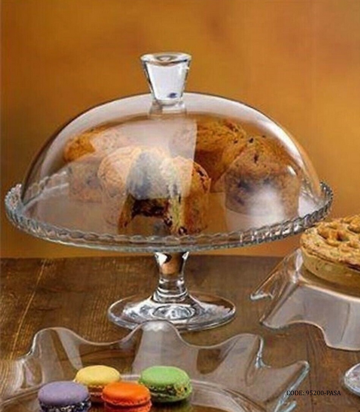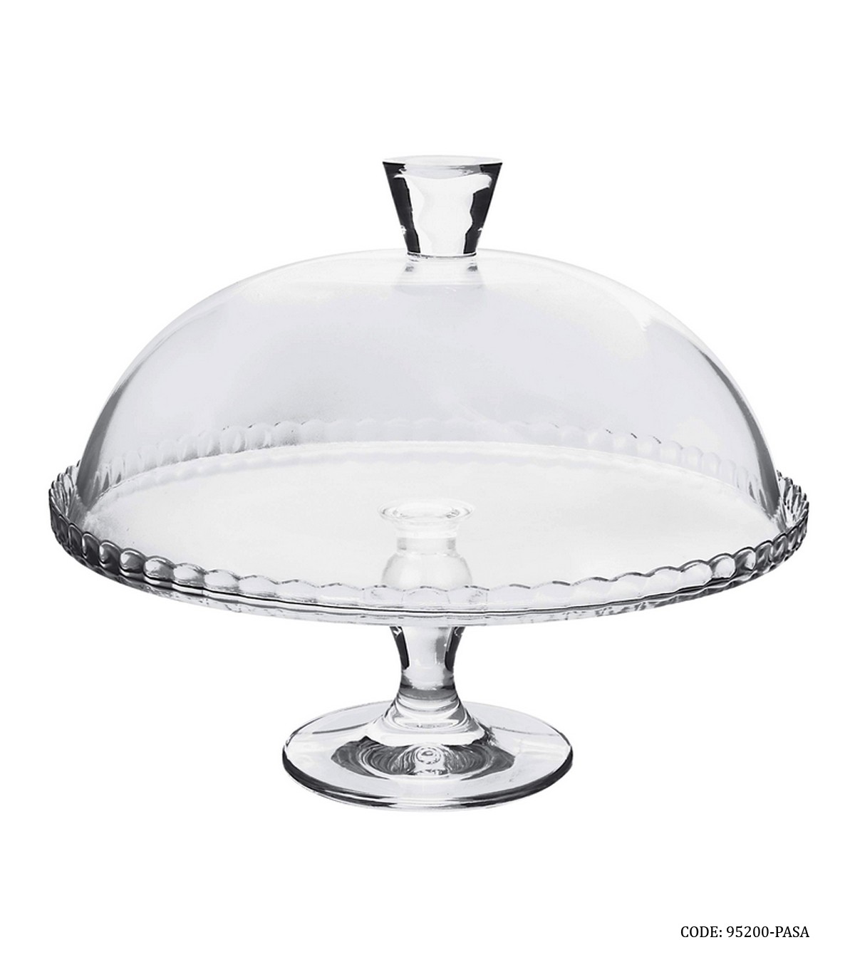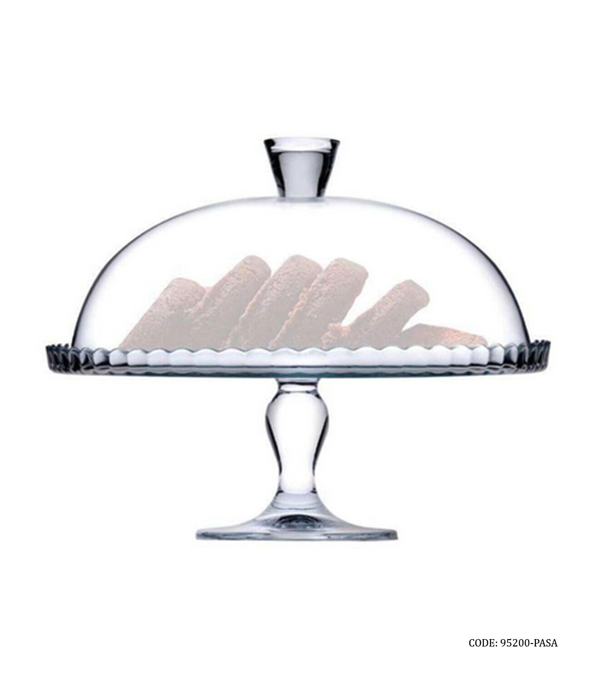 کیک خوری بلوری پایه دار با درپوش بلوری ترک پاشاباغچه طرح ساده