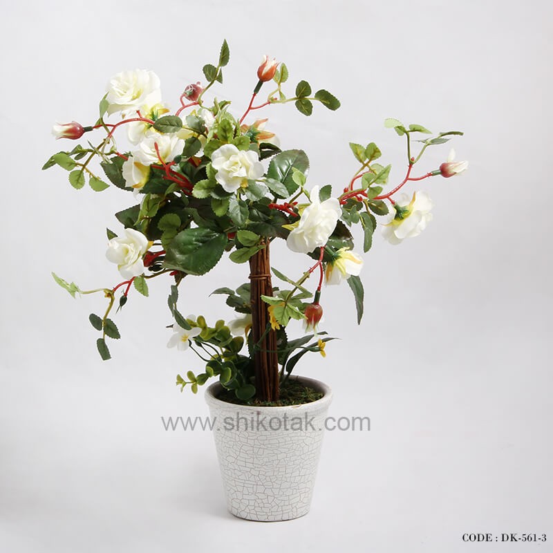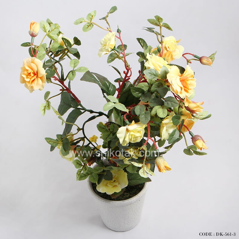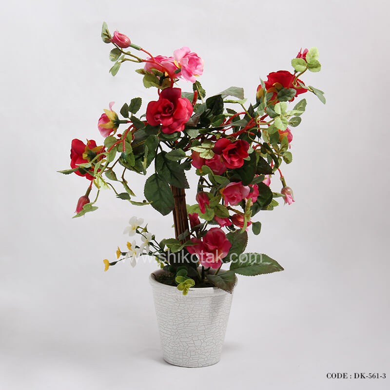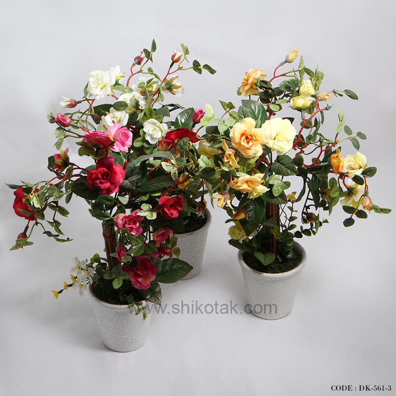 - هر گلدان دارای چندین شاخه گل رز مصنوعی
