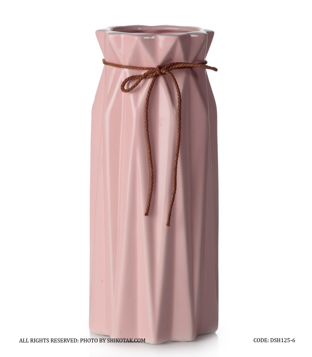 گلدان سرامیکی نخ دار صورتی