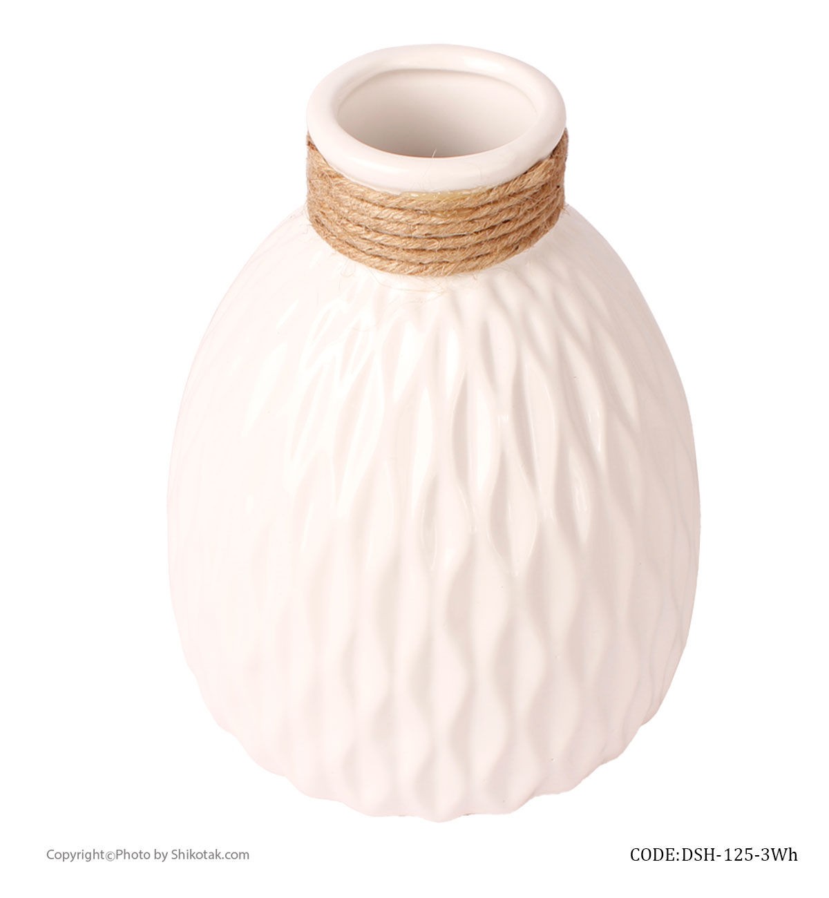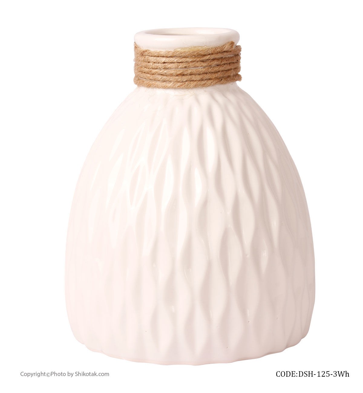 گلدان سفید سرامیکی طرحدار لبه کنفی