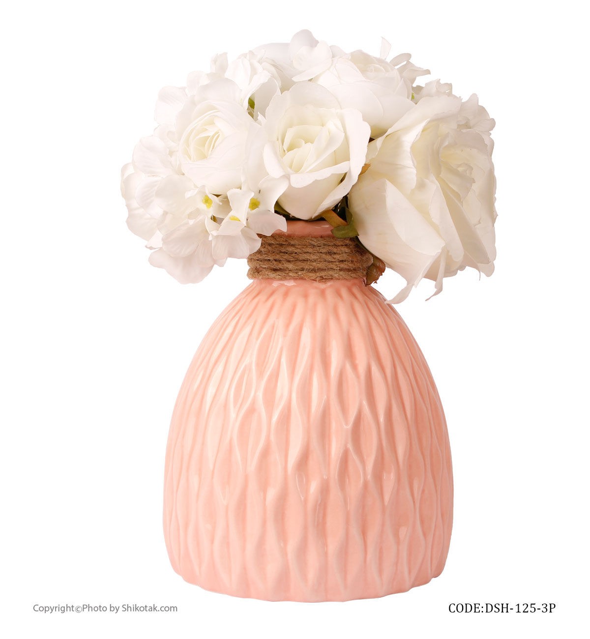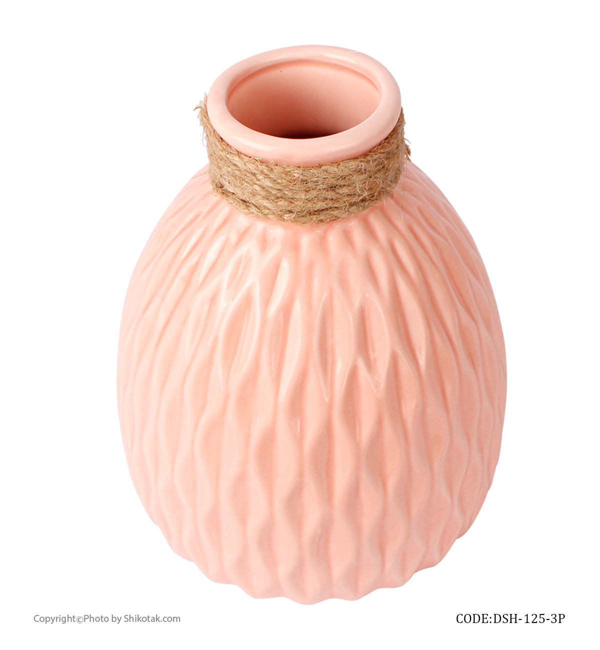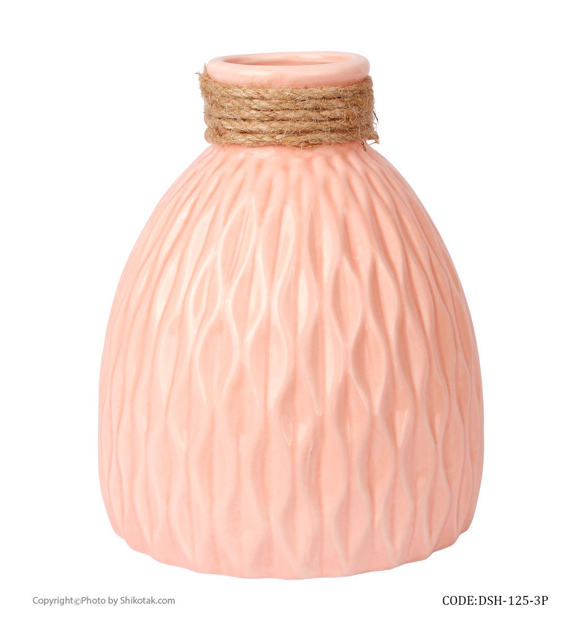 گلدان صورتی سرامیکی پهن لبه کنفی
