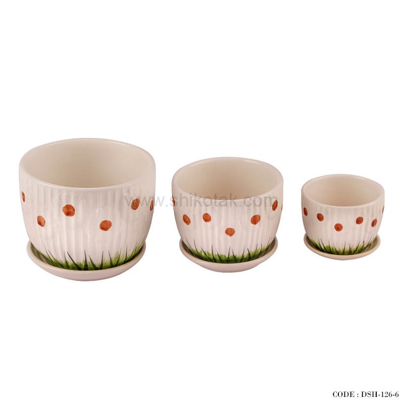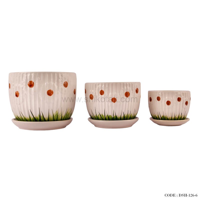 گلدان سرامیکی سه سایز گل طبیعی طرح بابونه