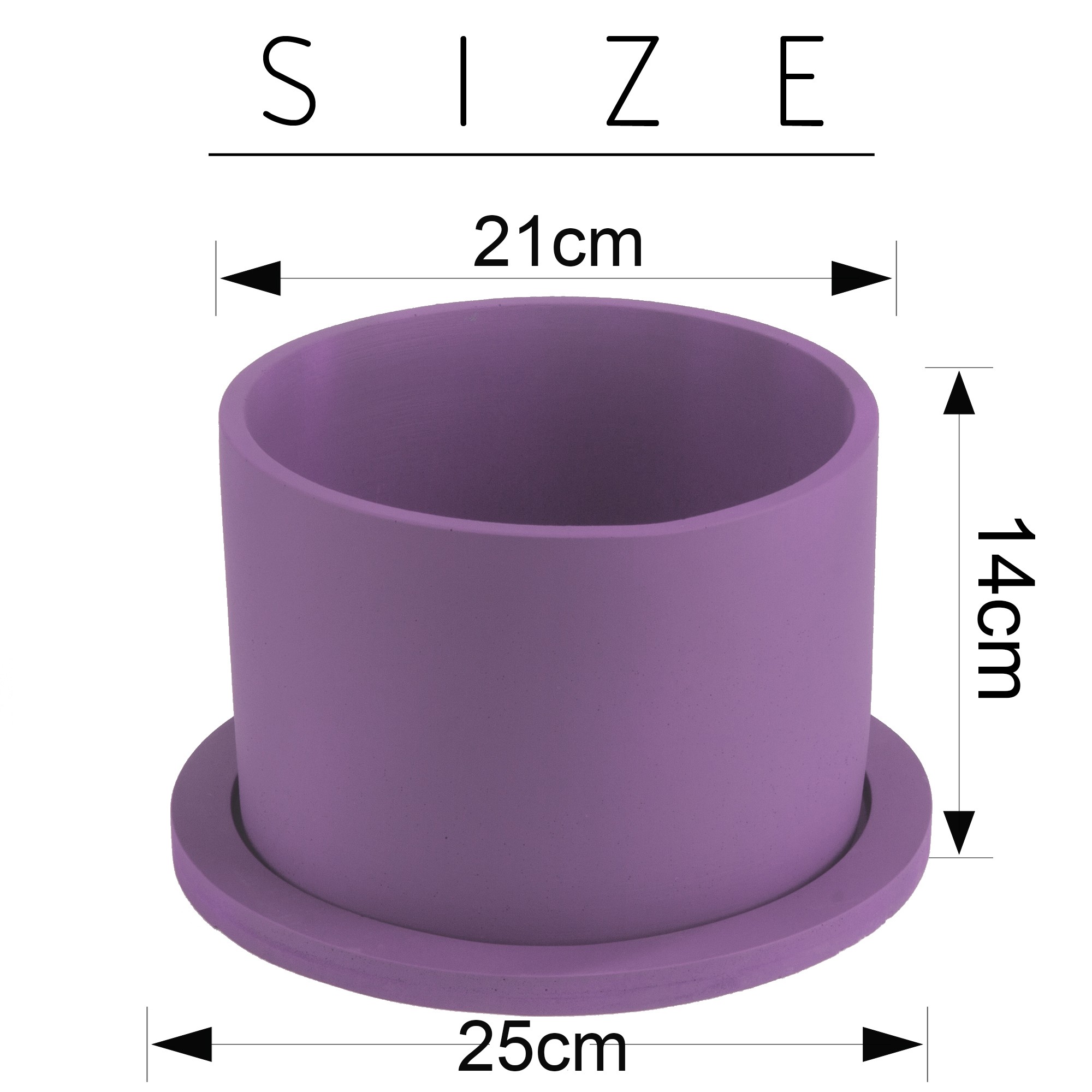 ارتفاع گلدان 14 سانتیمتر به قطر 21 سانتیمتر و قطر زیرگلدانی 25 سانتیمتر میباشد