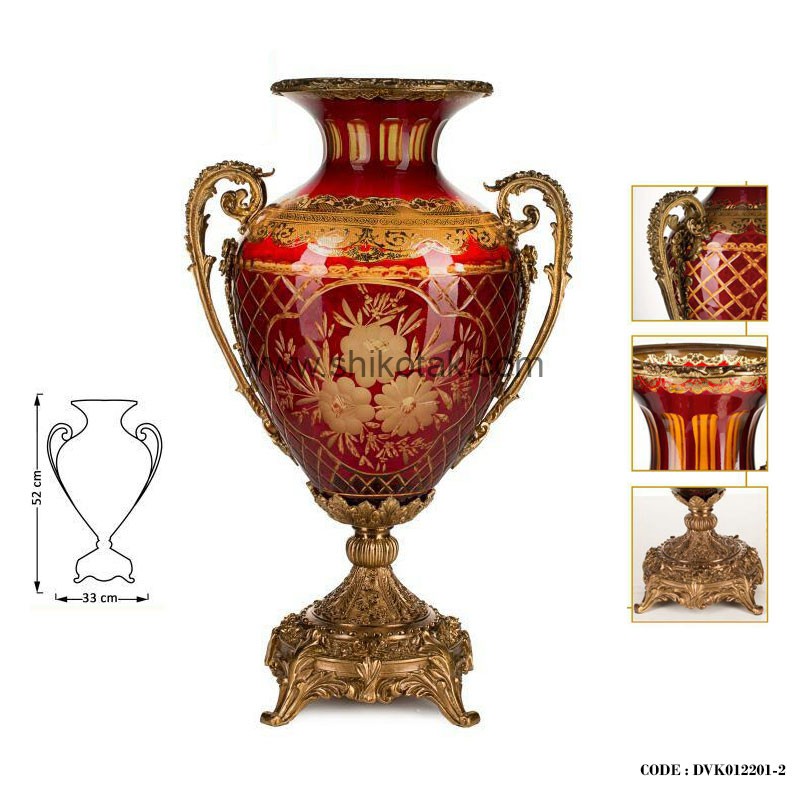 گلدان پایه برنز کوتاه قرمز طلایی سری۰۱۲
